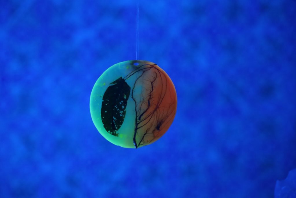 When the first rays of the day’s sun hit its purple leaves, the Morning Glory unfurls and its large funnel-shaped flowers seem to grow before your eyes. When the sun sets again, the flowers also close and remain until the next morning, waiting for the new rays of sunlight, which they literally reach for. The reason for this is the chemical auxin, which is released when sunlight hits the plant cells and stimulates their growth. But because the light reaches the inner petals less, these cells stay the same and force the flower to close when the light is gone. Morning Glory’s counterpart is called Evening Primrose. Its flowers are very short-lived, opening at dusk and usually fading by noon the next day. Root pieces, especially encased in epoxy resin mixed with fluorescent dye, are reminiscent of blood vessels that supply the body with the blood it needs to live. The roots of a plant also supply it with nutrients and thus help it to grow and develop flowers. In advance of the INTERFERENCE exhibition, Shatha Khalifeh collected parts of these special plants from the garden in her home in Amman, Jordan. These were to become the experimental basis of her work.
